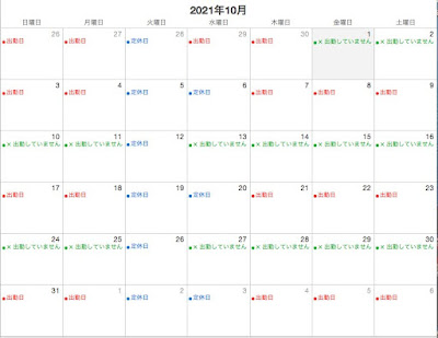 10月は出勤日数が少なくなっております。